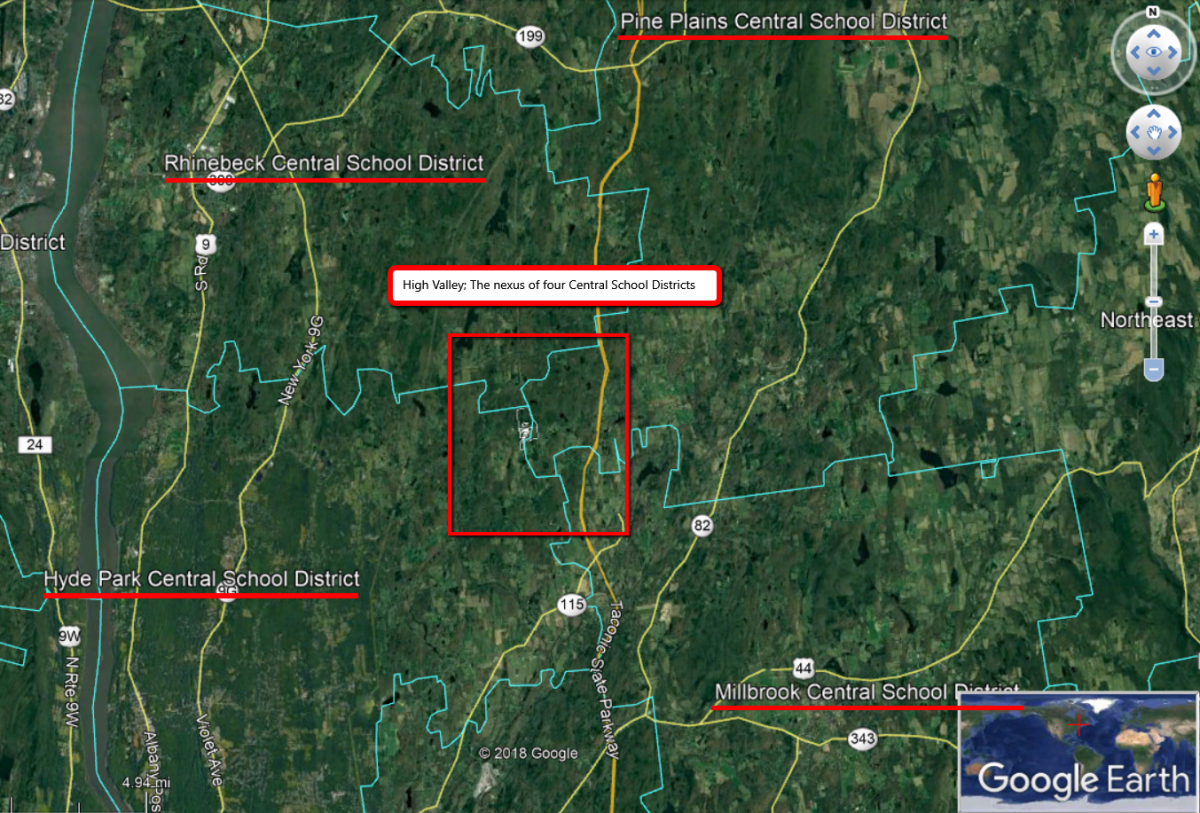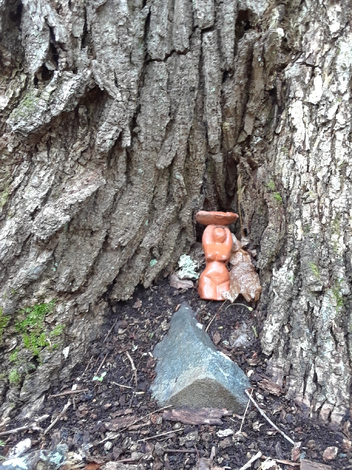 High Valley is also interestingly the geographical nexus to four public school zones. This could explain Al’s property tax woe, in part. see image. The token, reminiscent of a past visitor rests at the foot of a fourteen-foot diameter, old-growth, giant north of the pond. This tree reminds me of Al.